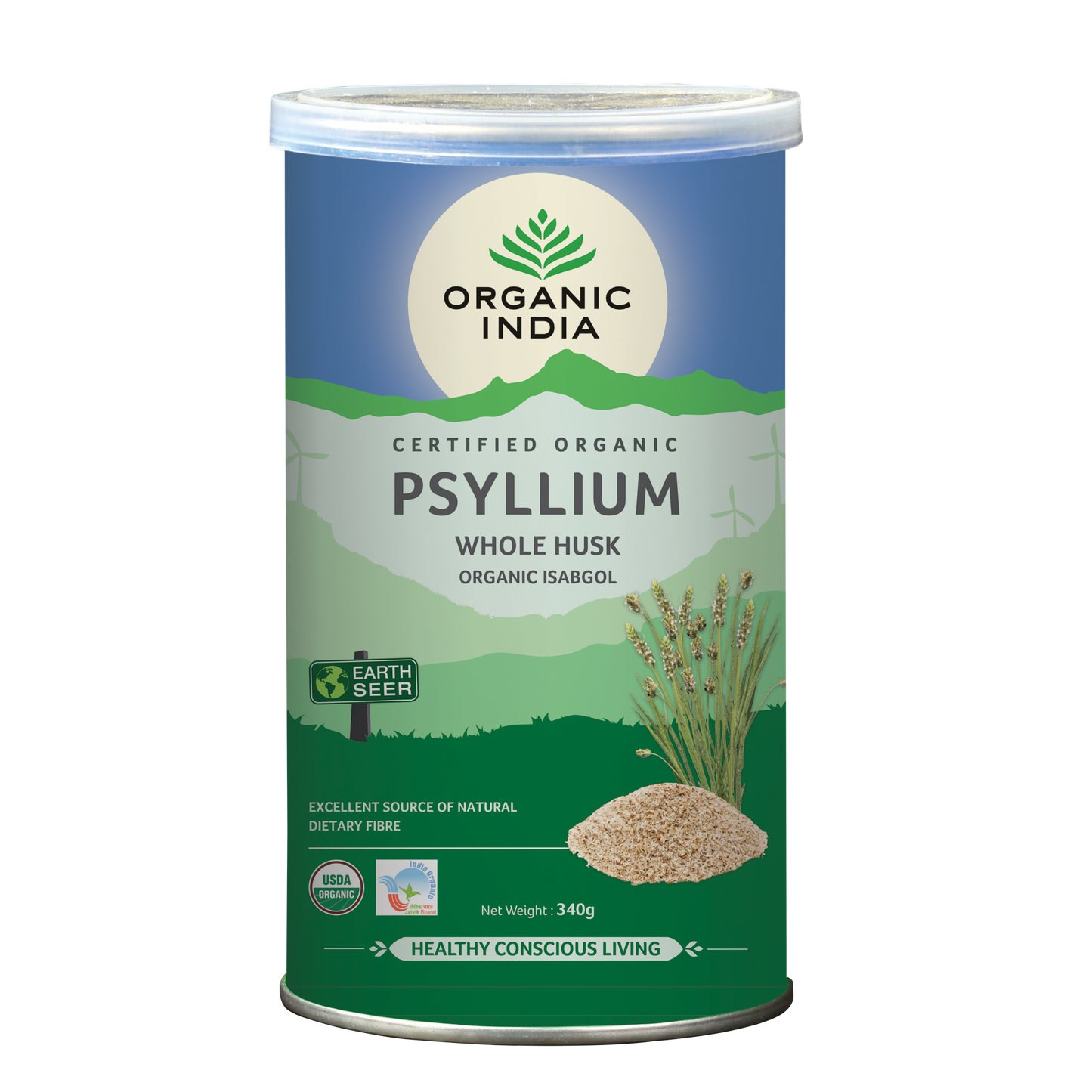 ORGANIC INDIA Certified Organic Psyllium Whole Husk is considered a gentle, bulk-forming supplement that contains both soluble and insoluble fibre which absorbs liquid in the intestines, to provide digestive support, aids in healthy elimination and regularity. Psyllium is a natural prebiotic, which promotes growth of beneficial microorganisms and supports gut health.