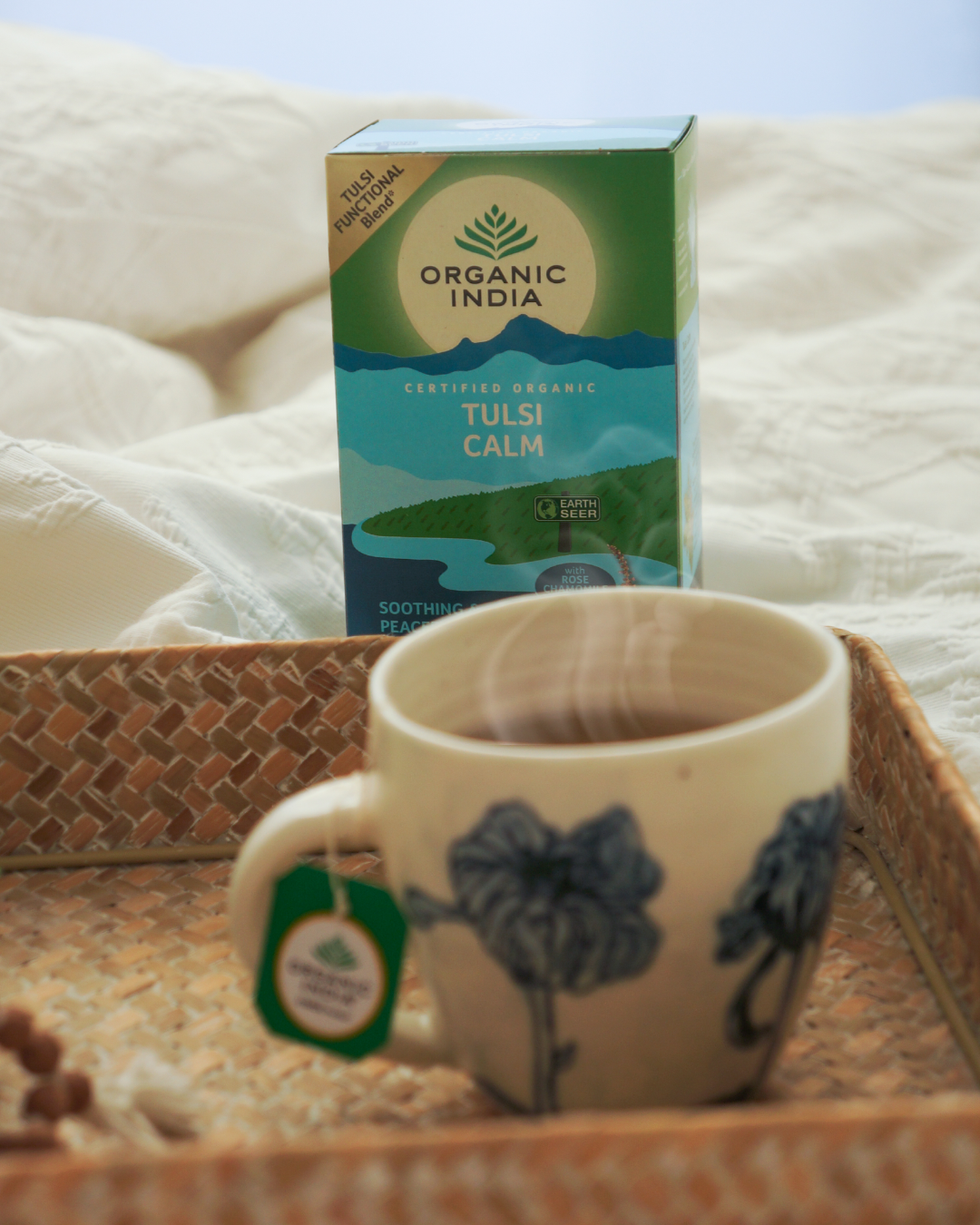 Bring on pace and tranquility with a cup of Tulsi CALM. Blended with Rose, Chamomile Jasmine and our cherished Tulsi to soothe restlessness and invite serenity into any moment of the day.