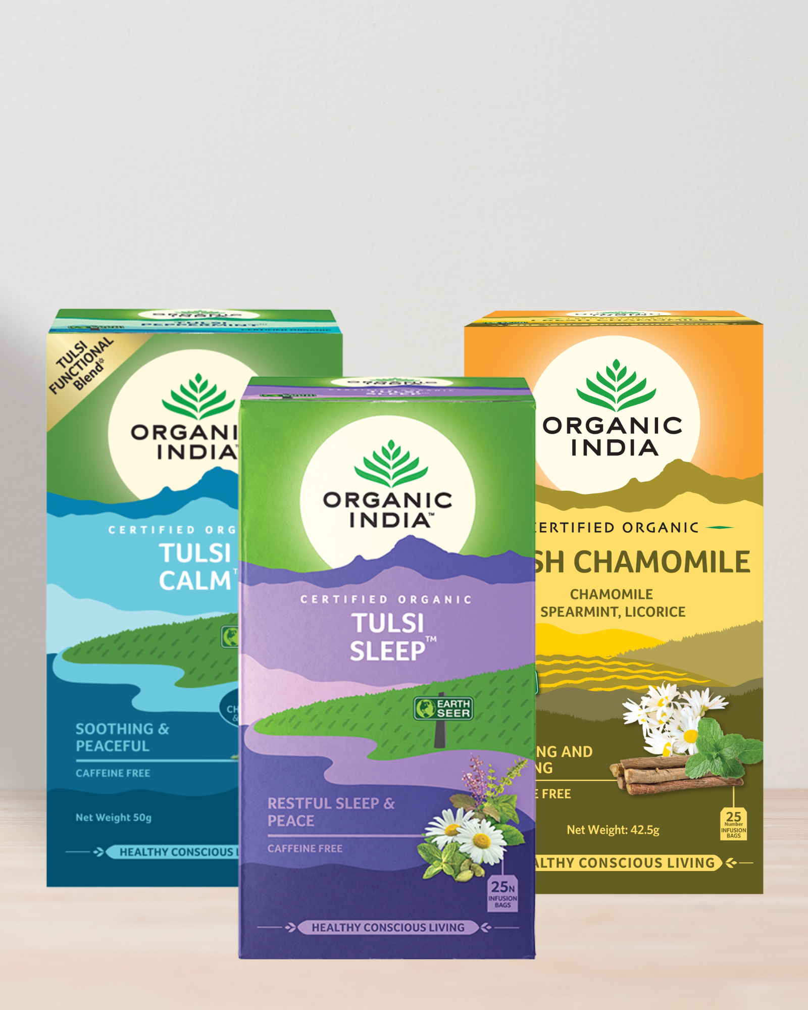 This outstanding combination of stress relieving herbs, including the incomparable Tulsi, Gotu Kola, Ashwagandha and Dwarf Morning Glory provide the restorative energy needed for healthy sleep. Combined with Chamomile, Cardamom & Peppermint this delicious blend promotes calm, restful sleep.