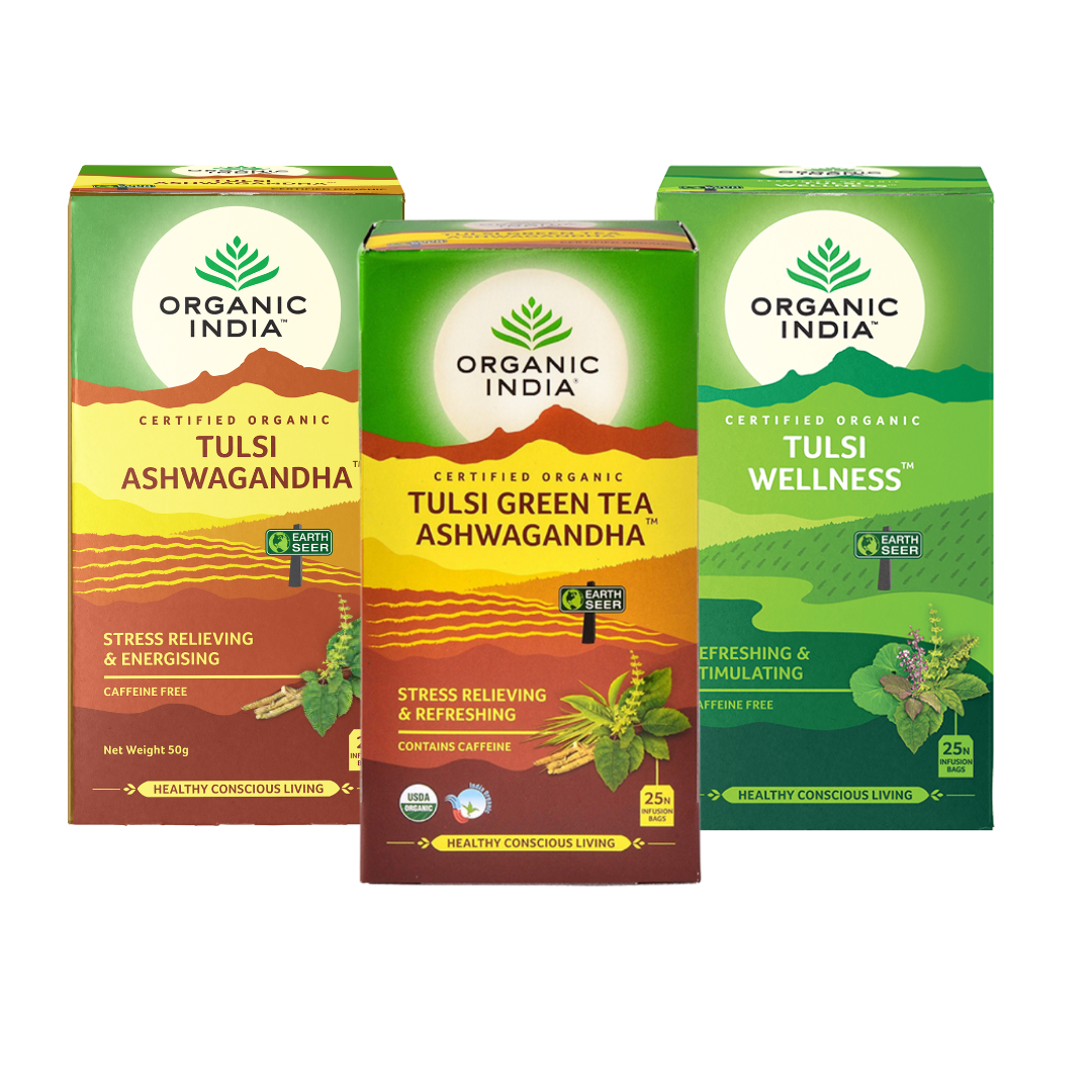 Tulsi Green Tea Ashwagandha is a unique & delicately balanced powerhouse of energy and vitality which has been carefully blended with the refreshing flavour of lemongrass to create a delicious and aromatic tea packed with the powerful health benefits of India’s wonder herb Ashwagandha. 25 tea bags per box. Stress relieving & abundant in antioxidants. Powerful adaptogen.